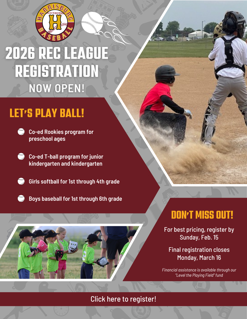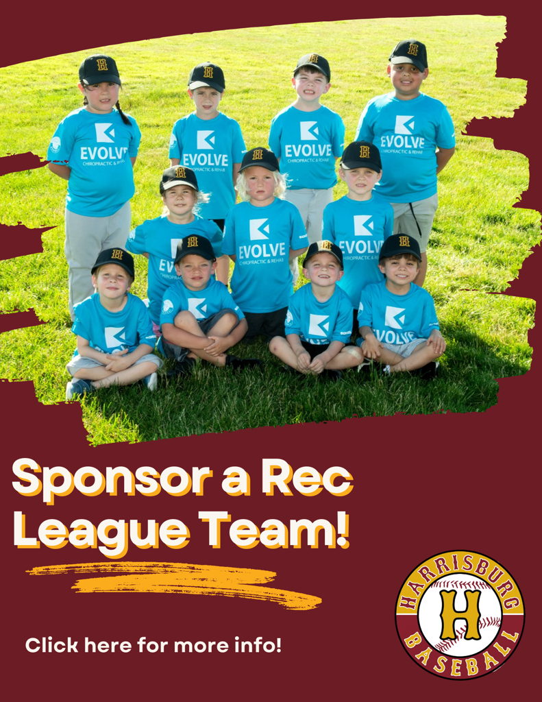 Sponsoring jerseys for one of our rec teams is an affordable way to support Harrisburg baseball and softball and to raise awareness of your organization.